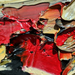 Scatizzi in questo caso utilizza il colore ad olio come sinonimo di quella brillantezza smaltata delle lacche, tocchi di carminio utilizzati in purezza che danno nobiltà ad un colore tanto prezioso quanto senza tempo.