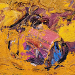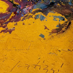Quello che le naturali crettature dell’olio evidenziano è la presenza, sotto quel giallo dorato, di uno strato di quell’azzurro ciano emergente in quei frutti insieme a quelle tonalità rosa e prugna.