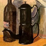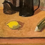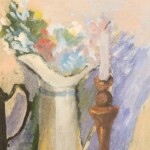 I fiori posti nel vaso che sembrano morbidamente mescolarsi al color glicine che descrive l’ombra proiettata del soggetto sulla parete di sfondo.