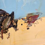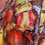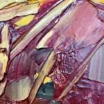 La bellezza della semplicità data dal legno grezzo la ritroviamo in questa vecchia porta, dalle assi sconnesse, scelta da Scatizzi proprio perché permeava perfettamente quella sensazione di pietra preziosa non modellata, ma da cui, con i dovuti accorgimenti ne sarebbe nata una gemma variopinta.