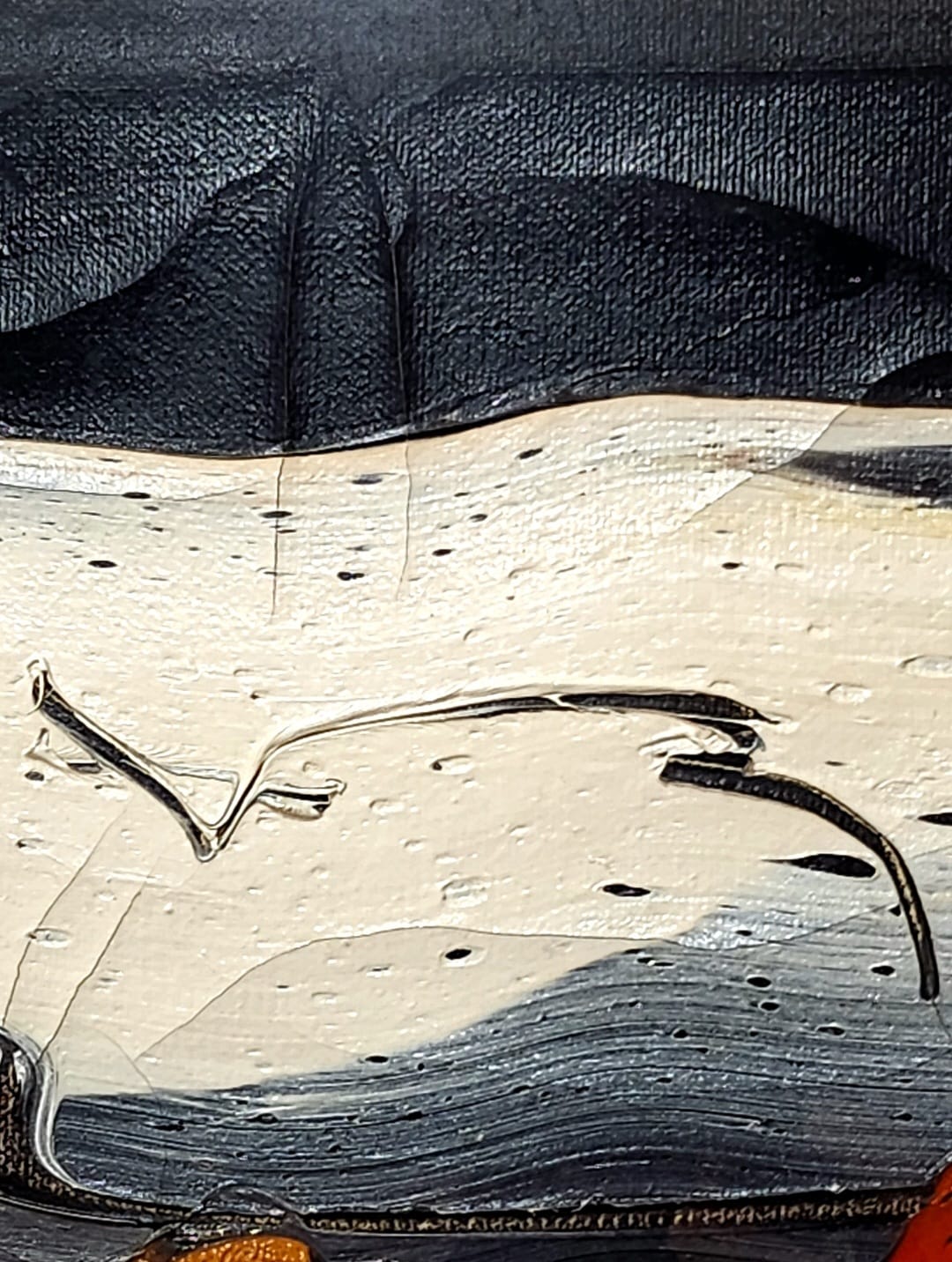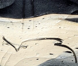 Possiamo perciò osservare dipinti come quello che vi presentiamo oggi, all’insegna quindi dell’asciuttezza grafica ma senza rinunciare ad una componente di matericità.