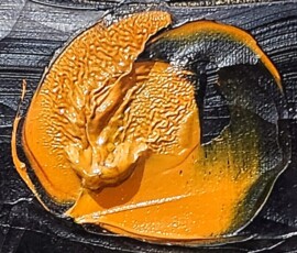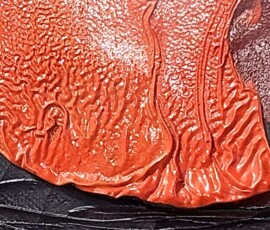 Il retaggio figurativo è però tangibile ed inequivocabile, quindi senza particolari sforzi decifriamo i due frutti in primo piano, siano esse arance o pomodori poco importa, mentre in secondo piano un libro o uno spartito su cui evidenti risultano i freghi riconducibili ad una scrittura scimmiottata.