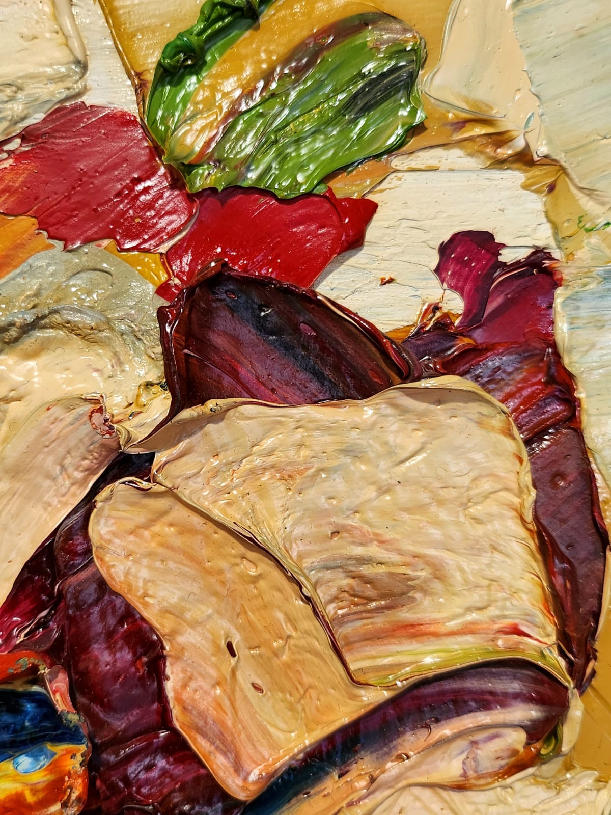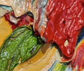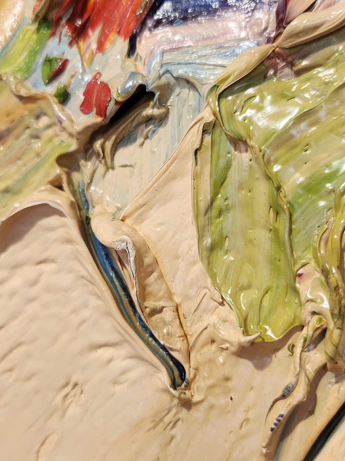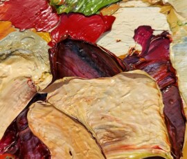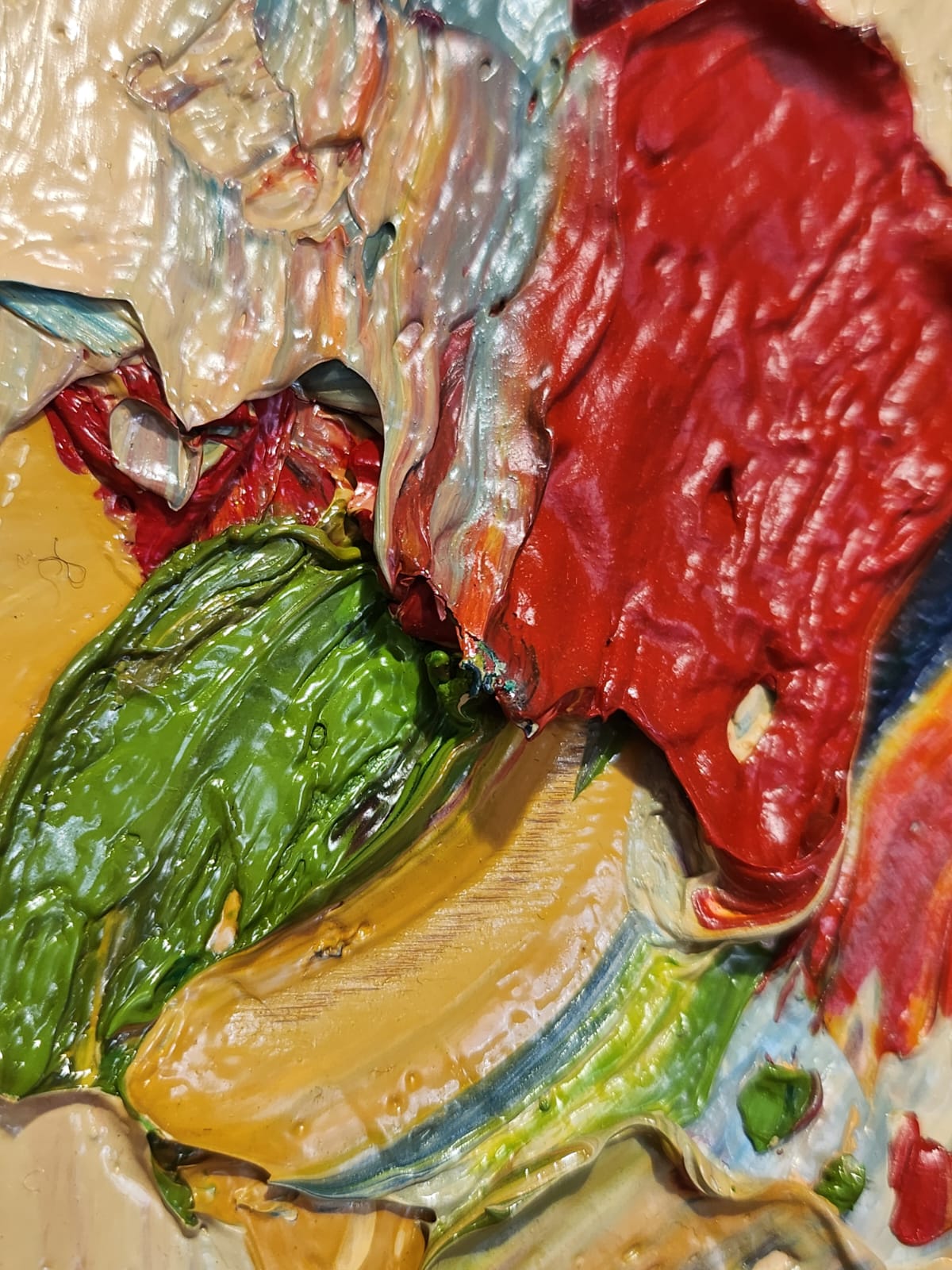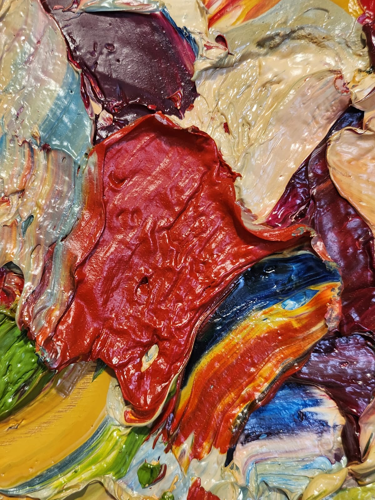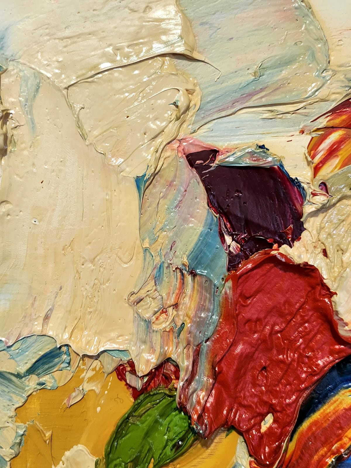 Scorgiamo però una parvenza di petali e di foglie, una pastosità stratificata assolutamente dirompente.