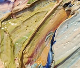 L’occhio si perde inevitabilmente dall’energia di quelle spatolate e dal fascino delle sue sfumature inaspettate.