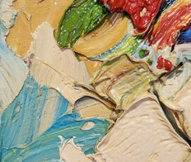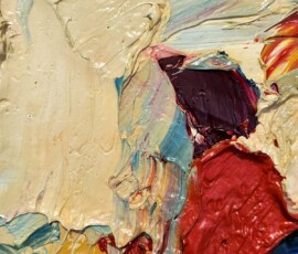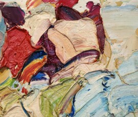 We do, however, glimpse a semblance of petals and leaves, a layered, impasto texture that is utterly disruptive.