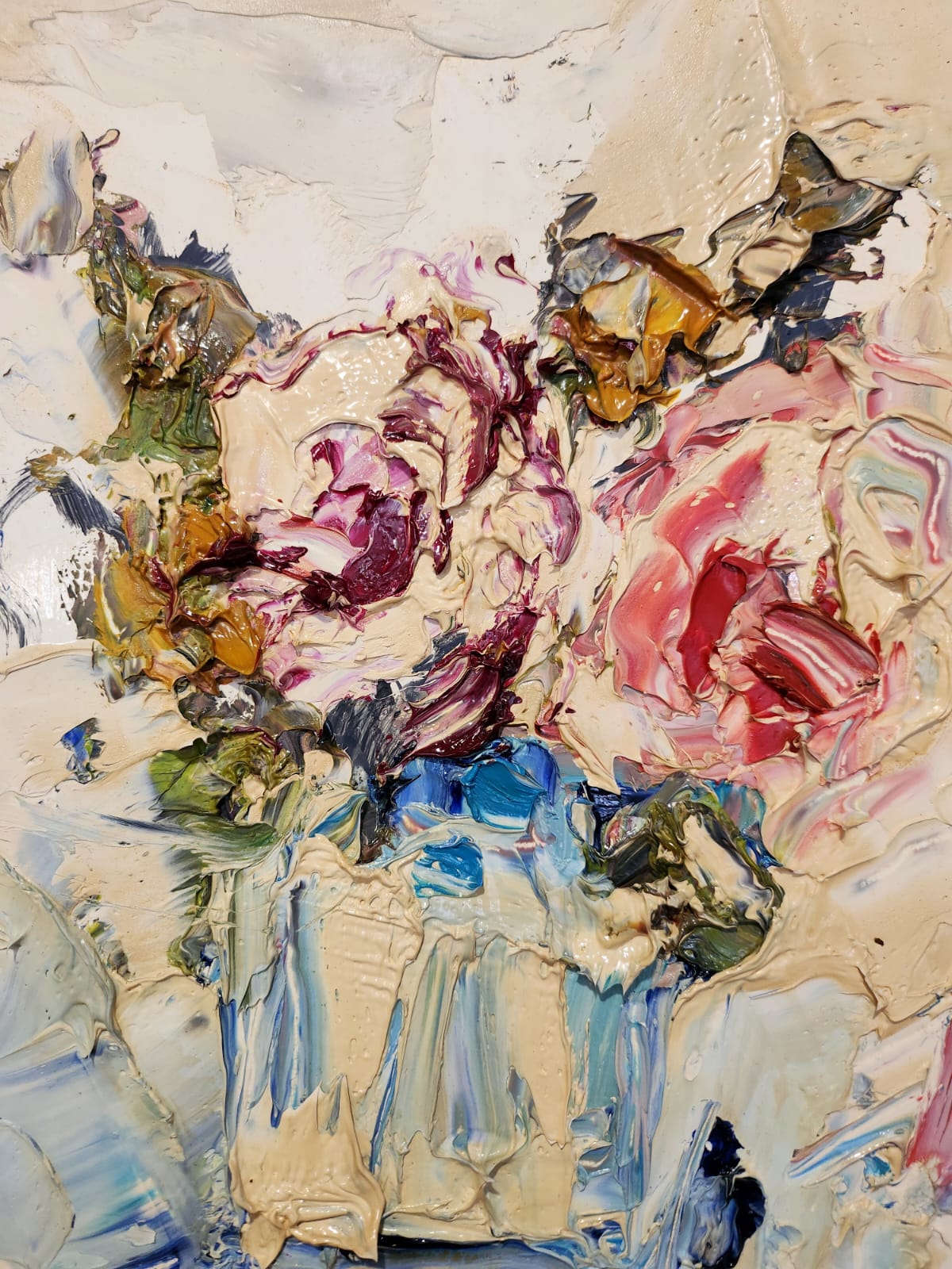 The spatula strokes create and discipline sudden clots of colour, succeeding in establishing a rediscovered rigour given by a merely imagined and at the same time mutable design, the result of compositional opportunity that is the sole daughter of a fluid and unconstrained becoming.