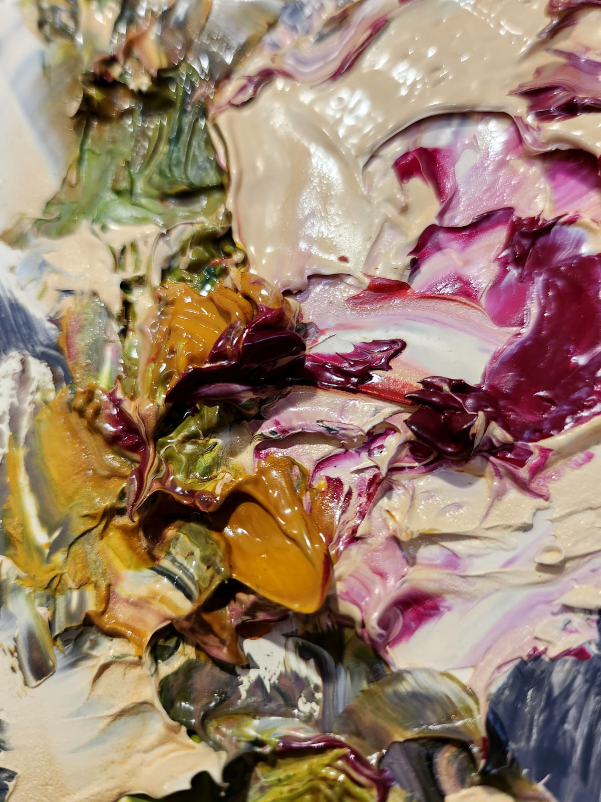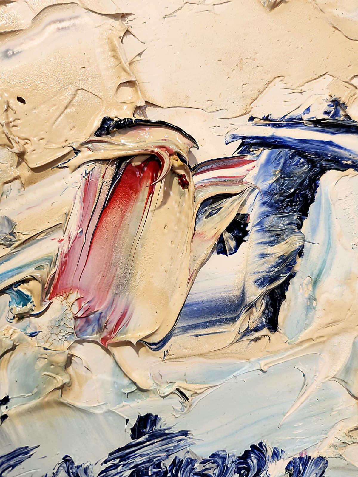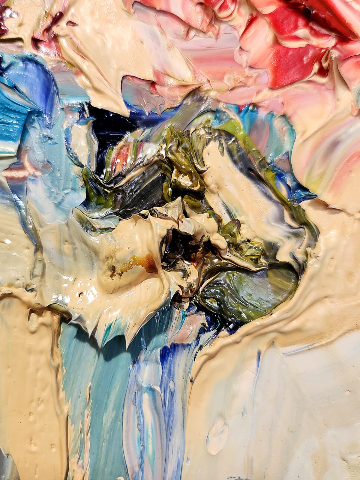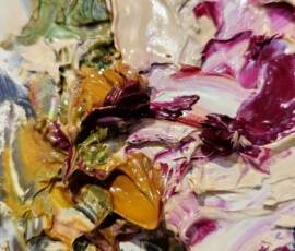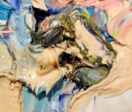 Le spatolate creano e disciplinano grumi di colore improvvisi, riuscendone a stabilire un redivivo rigore dato da un disegno meramente immaginato ed al contempo mutabile, frutto dell’opportunità compositiva figlia unicamente di un divenire fluido e senza costrizioni.