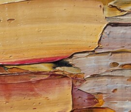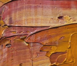 In certi casi è comprensibile, in altri, come in questo caso, le venature del legno traspaiono sotto la pellicola pittorica diventando parte integrante di quel disegno, ravvivando colori e forme con discrezione e naturale eleganza.