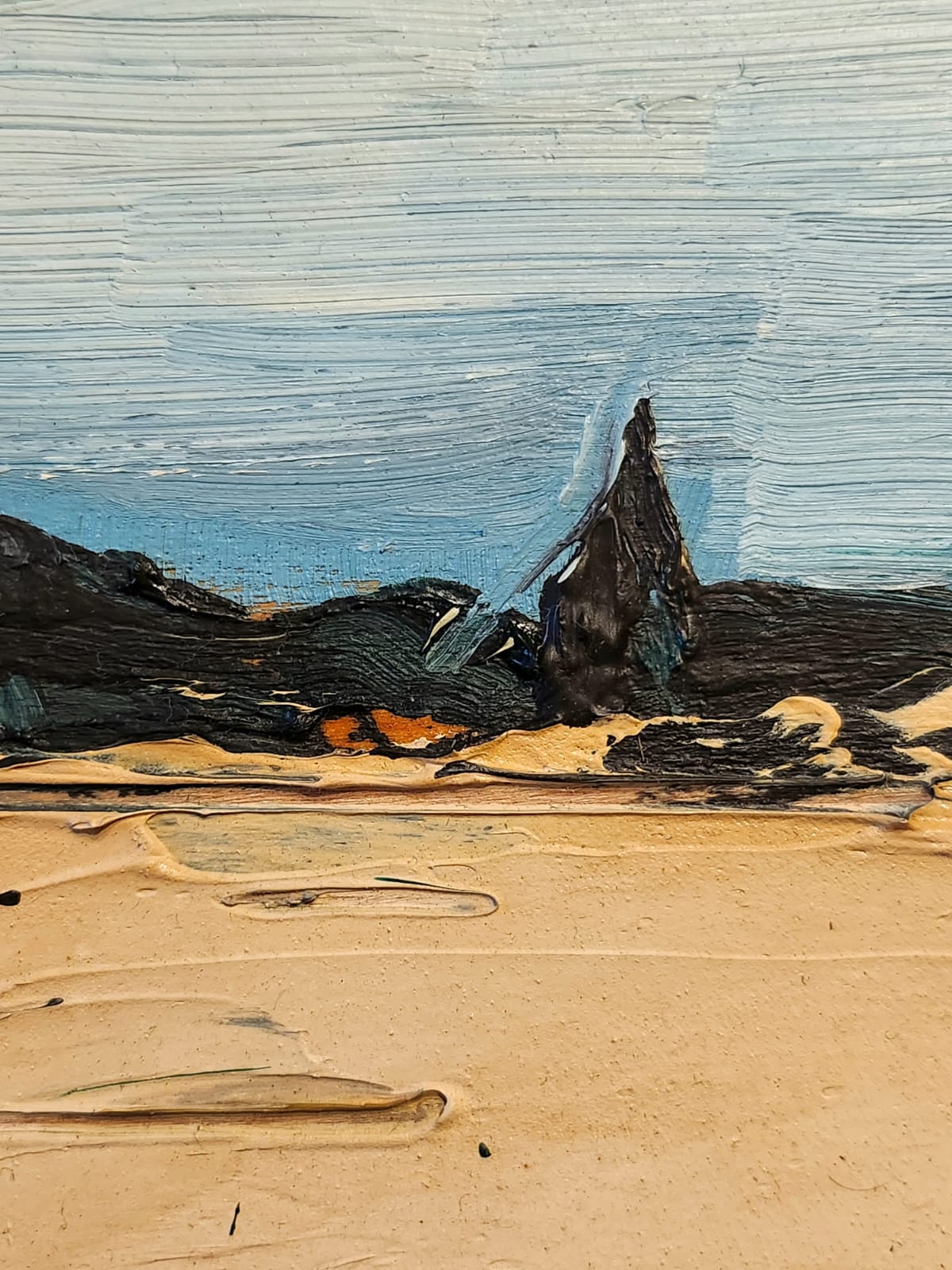 Il desiderio quindi si concretizza all’orizzonte, la cui limpidezza fa sì che l’intensità del mare si sposi con l’azzurro del cielo, ed insieme, come in un abbraccio idilliaco, paiono non volersi staccare ma bensì procedere all’unisono verso l’eternità sopra di loro.