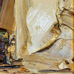 Quando osserviamo certe spatolate, non possiamo non immaginare quella mano e quella spatola che impastano ed amalgamano, divenendo l’una l’estensione naturale dell’altra.