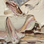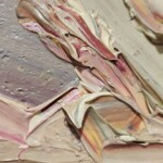Cremose spatolate plasmano la materia secondo la volontà del pittore che, come un direttore d’orchestra, armonizza i vari componenti per giungere ad un componimento corale.