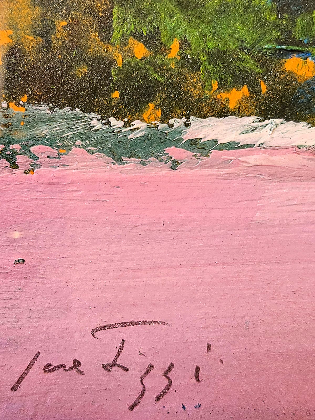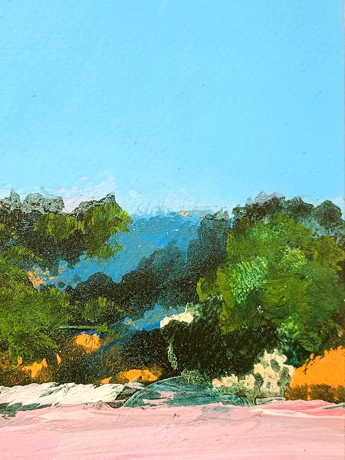 The small painting manages to convey a rare sense of lightness, probably precisely because of this balanced use of the blue of the sky and the pink of the meadow.