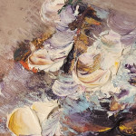 Soffermiamoci quindi sull’uva, resa da Scatizzi con tanti piccoli tocchi dati con la punta della spatola.