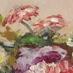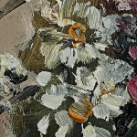 The flowers are scrupulously described here. We can grasp the expertise and definition of the petals, allowing the essences to be easily recognised. The chiaroscuro aspects of the entire composition are of utmost importance to Scatizzi in this work, as is the transparency of the glass vase.